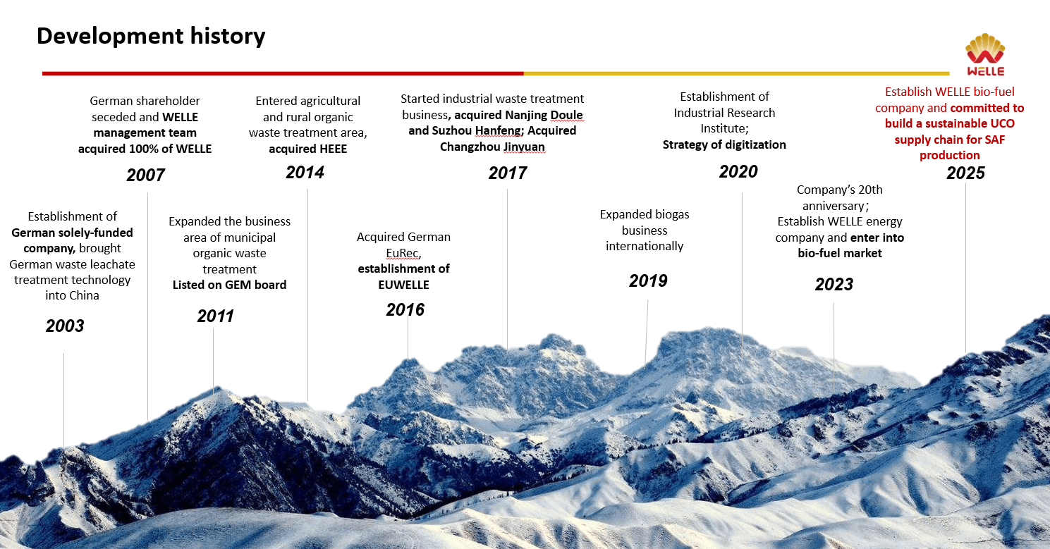 Die WELLE Environmental Technology Group Co., Ltd. wurde im Jahr 2003 gegründet und im Jahr 2011 erfolgreich an der Börse von Shenzhen notiert. Das Unternehmen beschäftigt derzeit rund 2.000 Mitarbeiter, darunter über 100 Fachkräfte mit Master- oder Doktorabschluss. WELLE ist eine Unternehmensgruppe für Energieeinsparung und Umweltschutz mit ausgeprägter Kerntechnologie und nachhaltiger Innovationsfähigkeit.
